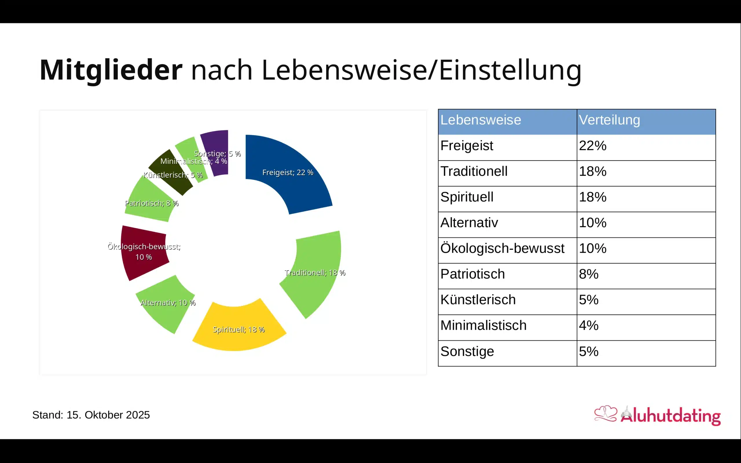 Auf Aluhutdating treffen Menschen aufeinander, die ähnliche Interessen, Lebensvorstellungen und Glaubenssätze haben. Hier siehst du einige Themengebiete, auf die sich Aluhutdating fokussiert: