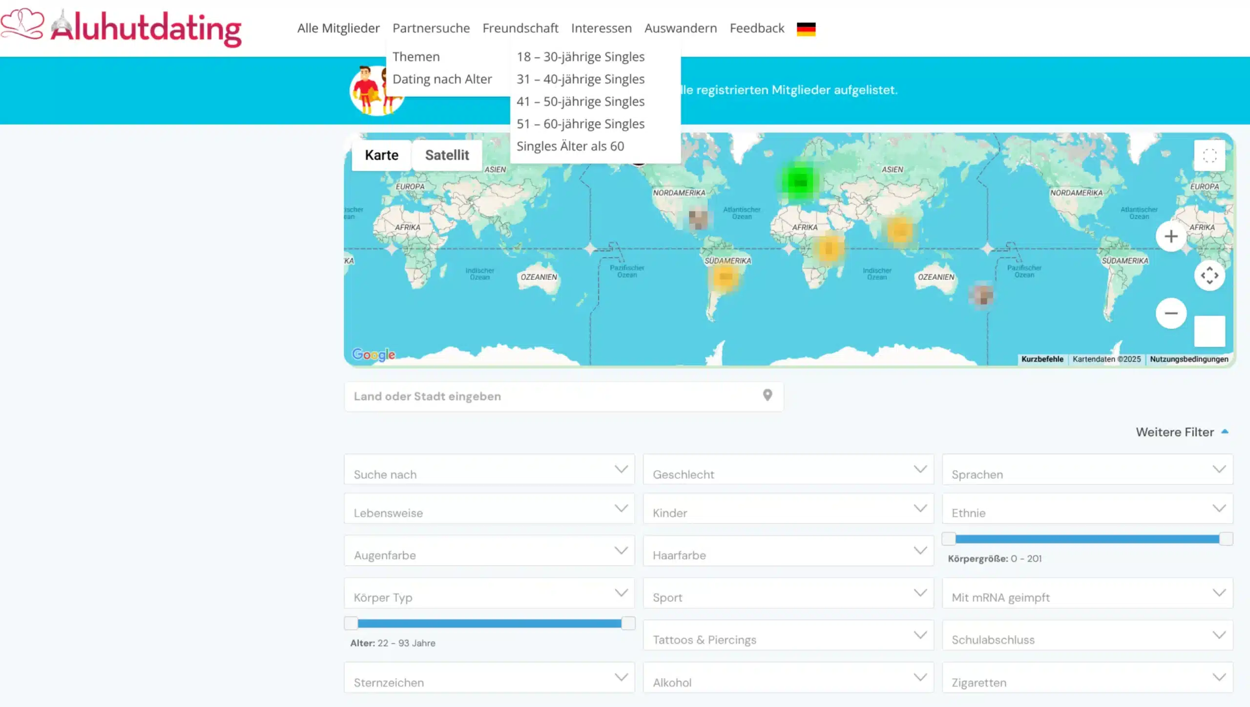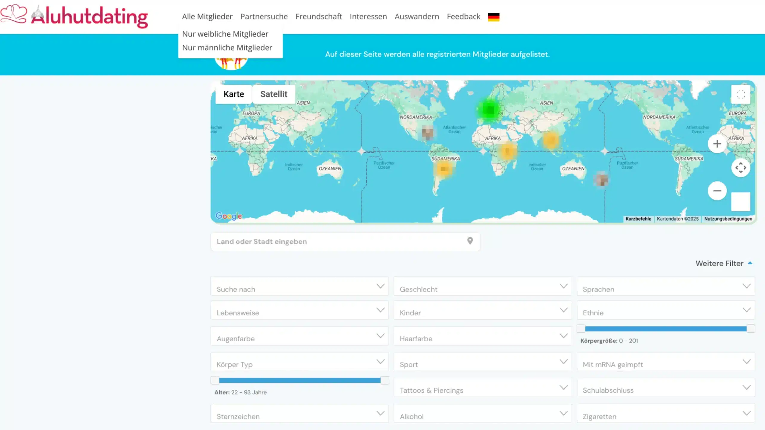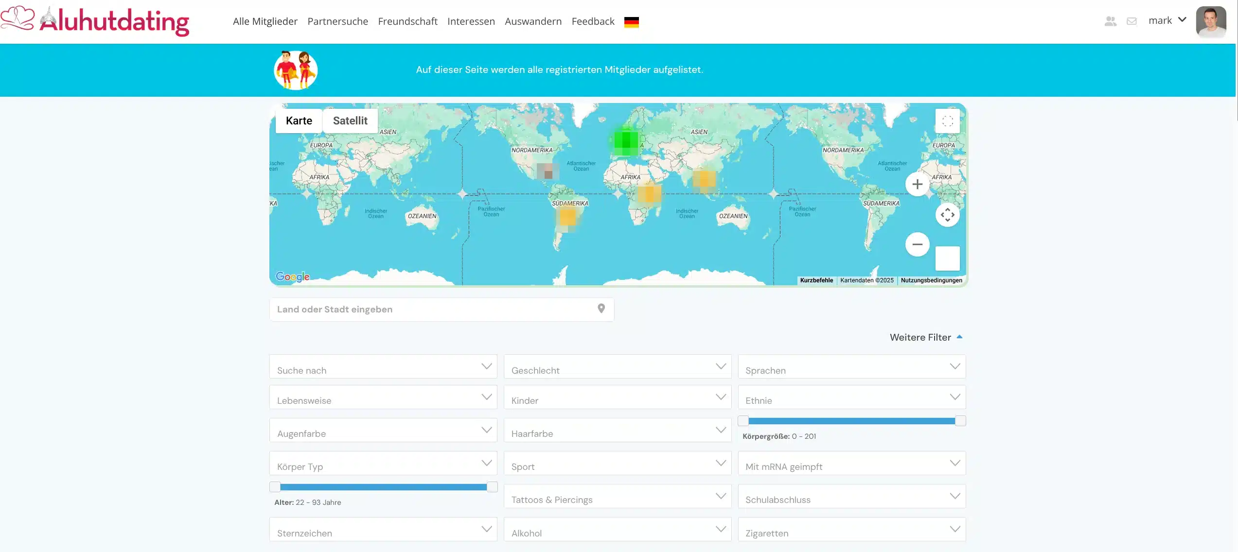 Du möchtest Gleichgesinnte aus anderen Ländern kennenlernen? Über die interaktive Weltkarte kannst du dir die Profile aller Mitglieder anzeigen lassen.